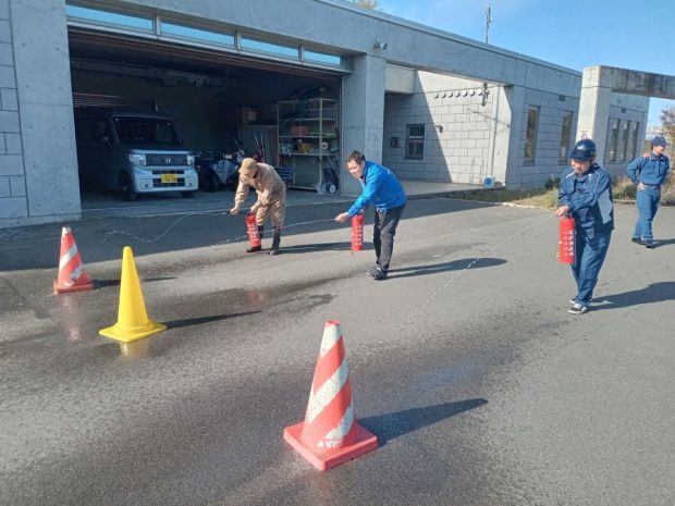 避難訓練後には消火器の使用法を学びました。