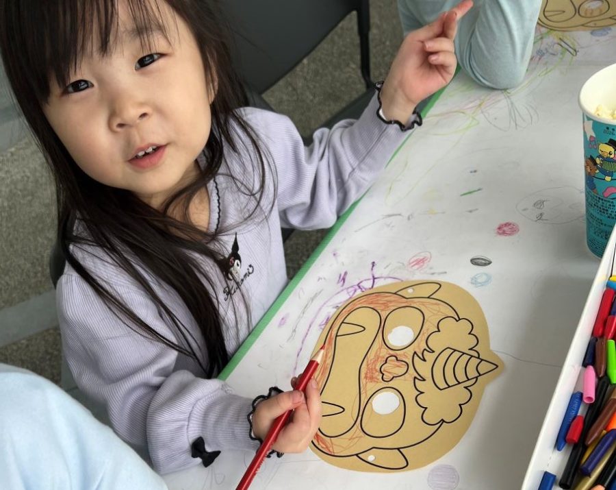 鬼のお面作成コーナーではぬりえを楽しめます😊