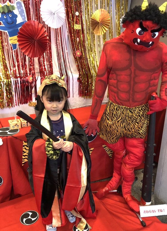 節分フォトスポットに鬼のパンツやウィッグなどのコスチュームも着用できます👹