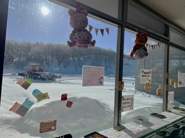 園内をバルーンで飾り付け、手作りカード作成コーナーを設置しました。