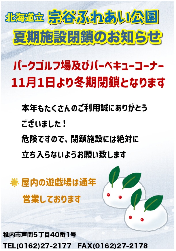 残り少ないシーズンをお楽しみいただき、営業最終日にはぜひ当公園へ足をお運びください🌟