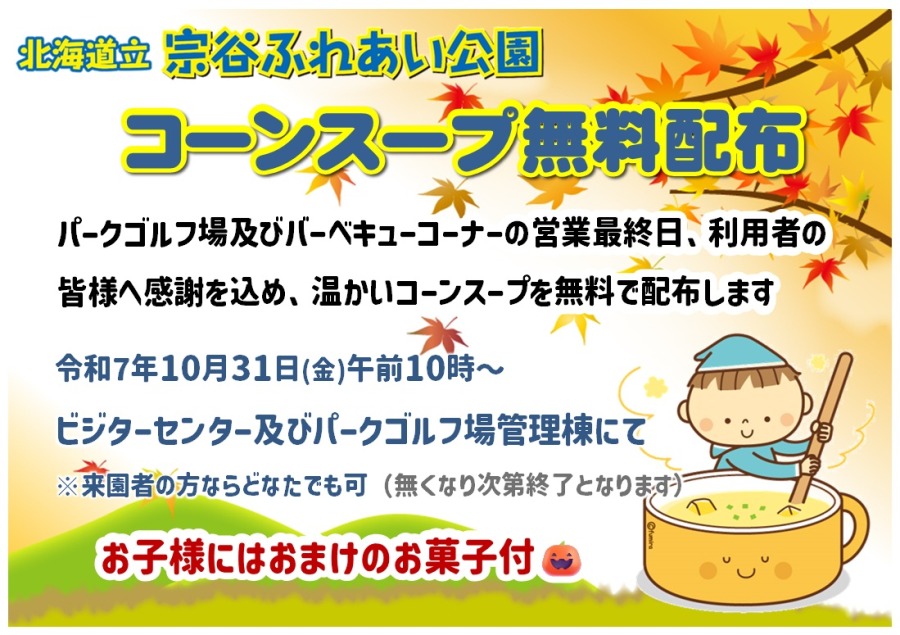 また、今年度のご利用に感謝を込めて来園者の方に温かいコーンスープをお配りします✨