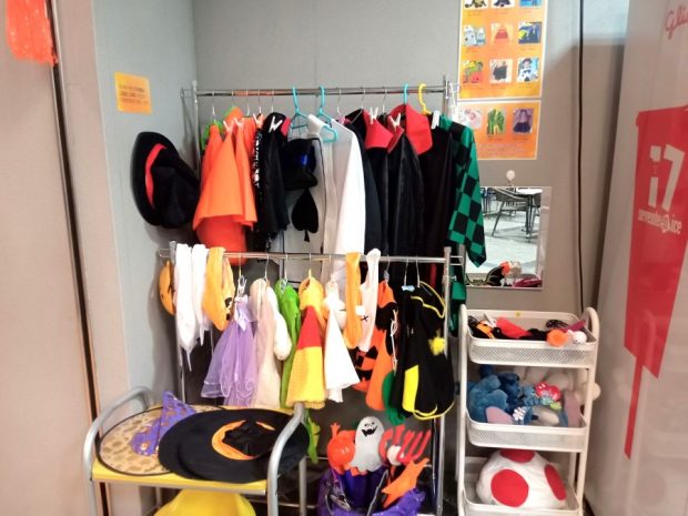 コスチュームも無料で貸し出します!マントや帽子などはご自由にご利用ください。使用後は、整理整頓をお願いします🧙♀️