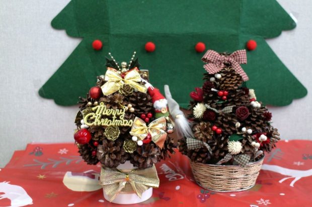 松ぼっくりを組み立てて飾り付けをしオリジナルツリーを作りませんか?